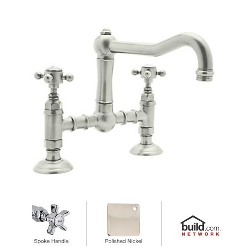 Rohl A1459XPN-2 Country Kitchen Deck Mounted Bridge Faucet with Five Spoke Handle and Column Spout, Polished Nickel