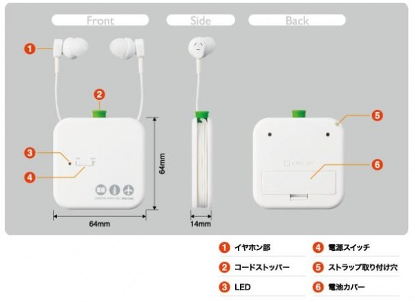 | サイズ | W64×H14×D64mm(イヤホン・コードストッパー除く) 個装サイズ:12×20×6cm |