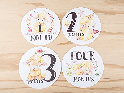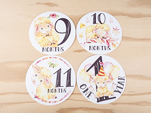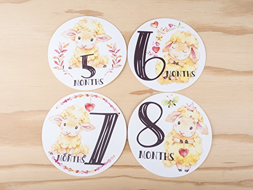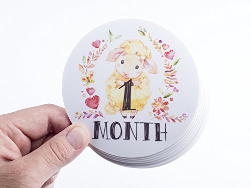 Darling Little Sheep Monthly Milestone Stickers - Baby Onesie Stickers First 12 Months - For First Year Scrapbook Photos - Family owned & operated.