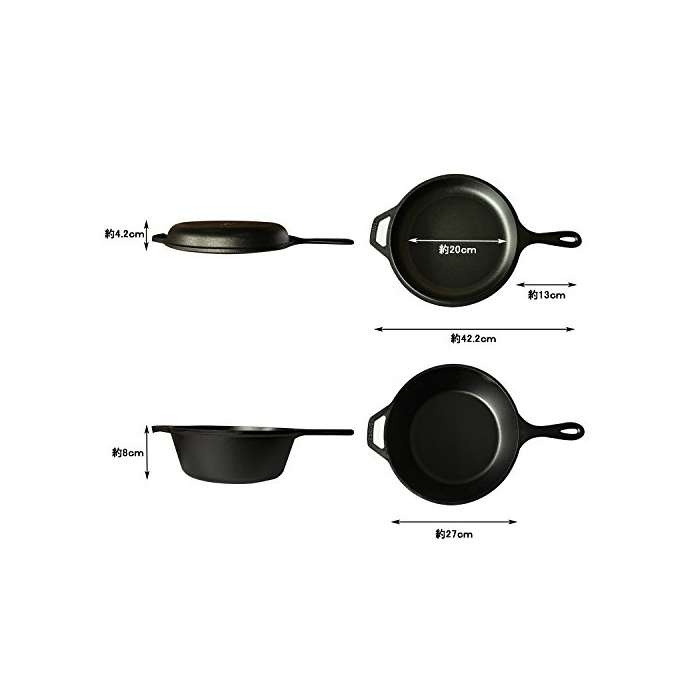 ●사이즈: 「쿠커 오븐」안쪽 치수 약27×깊이 약8cm,직경 약42.2cm,손잡이 약13cm 「스키렛트(후라이팬요리)(커버)」안쪽 치수 약20×깊이 약4.2cm,직경 약42.2cm,손잡이 약13cm ●중량:약5.6kg ●재질:주철 ●사양:IH조리기 사용 가능