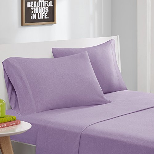 Intelligent Design ID20-703 Cotton Blend Jersey Knit Sheet Set Twin Purple,Twin