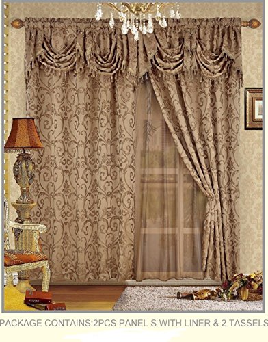 - Set includes: 2 Curtain Panels (55"x 84") and 2 Tiebacks