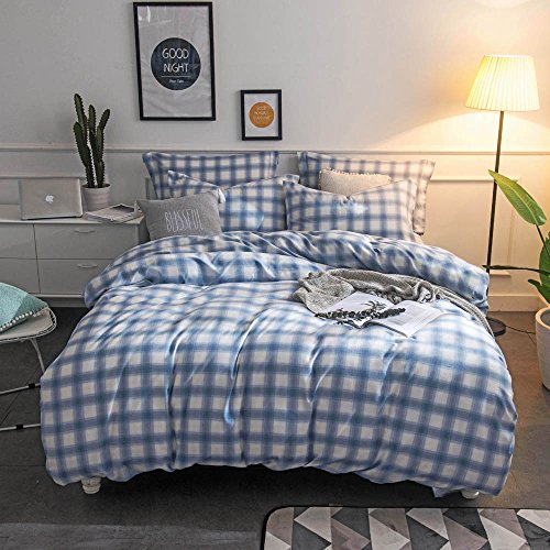 Merryfeel 100% cotton Plaid Light Flannel Duvet Cover Set - King