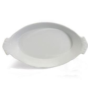 White porcelain au gratin baker , perfect for your aking needs.
