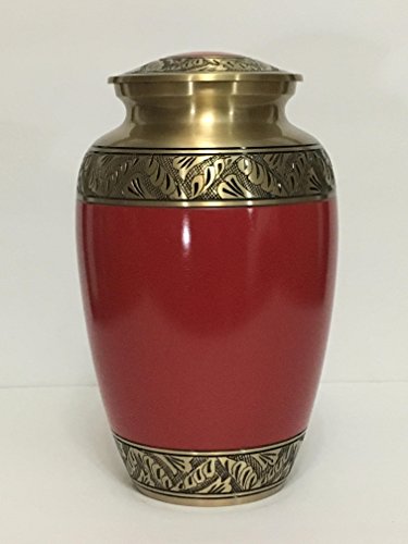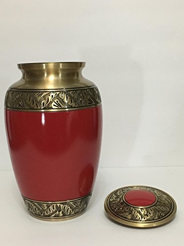 Indian Artefacts Handcrafted Royal Red Cremation Urn with Gold Floral Border and Trim for Adult Human Ashes,10 Inches High