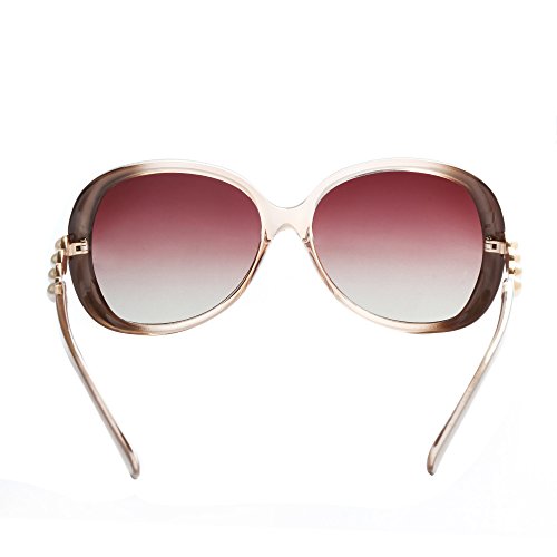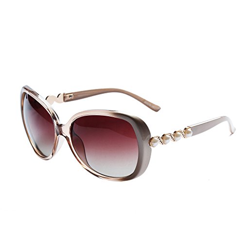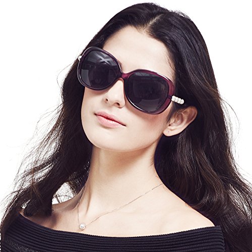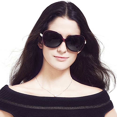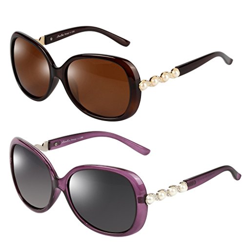-. Feature : Plastic frames with light weight, high plasticity, produced by industrial mold, stable quality is a kind of environmental protection engineering plastics. / UV protection polarized lens passed the Drop Ball Test and FDA certification with different colors restore original true colors of the world, increase clarity and give you a real feeling to the world. / Sunglasses for women polarized, sunglasses uv protection, resist of ultraviolet, protect one's eyes / Color: black and pink, purple and brown. Size: lens width: 59mm, bridge: 15mm, temple: 136mm, lens height: 53mm / Package: 2 pair of sunglasses, 2 cleaning cloth, 1 manual, 2 cloth bags and 1 card testing polarization