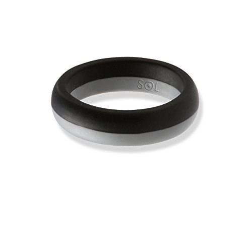 SOL Women's Silicone Wedding Ring, High-End Silicone Rubber, Medical Grade, Black with Grey, Size 6