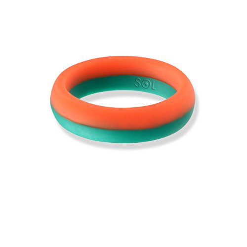 SOL Women's Silicone Wedding Ring, High-End Silicone Rubber, Pink with Teal Turquoise, Size 9