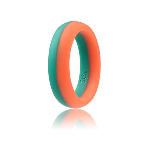 SOL Women's Silicone Wedding Ring, High-End Silicone Rubber, Pink with Teal Turquoise, Size 6
