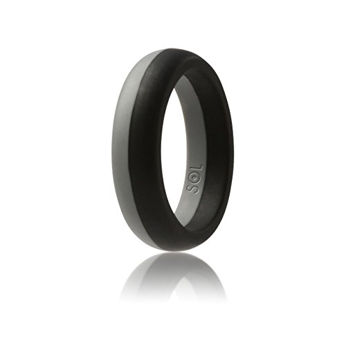 SOL Women's Silicone Wedding Ring, High-End Silicone Rubber, Medical Grade, Black with Grey, Size 5