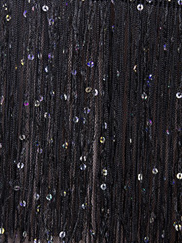 Vijiv Vintage 1920s Inspired Shawl Sleeve Sequin Layer Tassel Flapper Cocktail Dress,Black,XL
