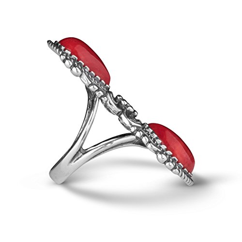 -. Binding : Jewelry -. Brand : American West -. Department : Womens -. Feature : Sterling silver elongated ring / Red coral gemstones / Measures approximately 1-1/2" tall x 1/2" wide / Designed and crafted in America with gemstones from around the world / Elongated ring with large, pear-shaped red coral cabochons in bezel settings with flower and rope details on a split tapered shank. -. Label : Relios -. Manufacturer : Relios -. Model : cp7-4100-194-xx -. MPN : cp7-4100-194-xx -. PartNumber : cp7-4100-194-xx -. ProductGroup : Jewelry -. ProductTypeName : FASHIONRING -. Publisher : Relios -. Studio : Relios -. Title : American West Sterling Silver Red Coral Elongated Ring