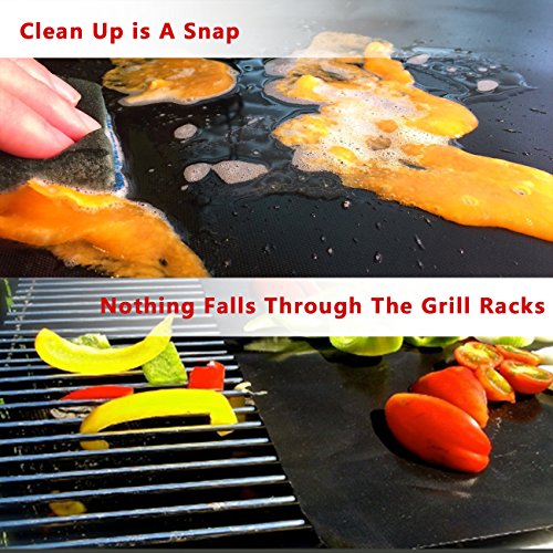 - 100% NON-STICK SURFACE for Tastier and Healthier Food. No need to use OILS or FATS ever again, heavy duty grill mat surface offer a mess-free barbecue experience, no more scrubbing grill grates, and prevent your food from falling through the cracks!