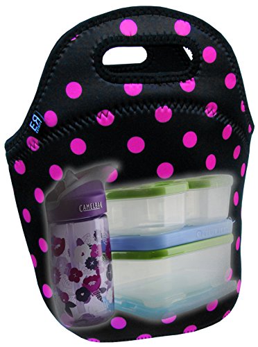 Healthcare Pros Insulated Lunch Tote Bag X-large, X-Thicker Insulation Stylish Luxury Gift Idea by EatRite (Black/FuchsiaDot)