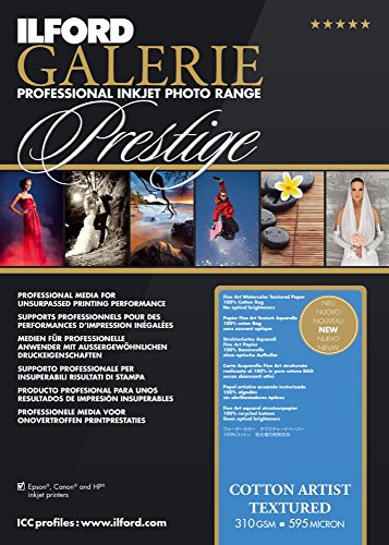 GALERIE Prestige Cotton Artist Textured is a mould-made 100% Cotton rag paper. The coarse structured surface allows for a beautiful traditional watercolor look and feel, whilst still reproducing pin-sharp details and color consistency. With no optical brighteners, this new addition in the GALERIE Prestige range is sure to add an extra dimension for the artisan printer and fine art photographer. GALERIE Prestige Cotton Artist Textured is available in sheets and rolls and is compatible with pigment-based printers.Feature