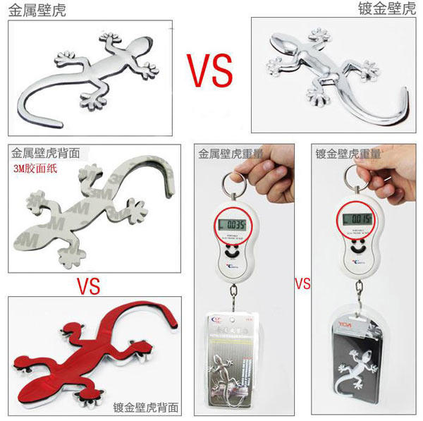 Our small gecko stickers, pure metal, or if the tail and claws cocked uneven situation, buyers do not need to worry, just put on a level surface, with a beat pressure will flatten oh ~