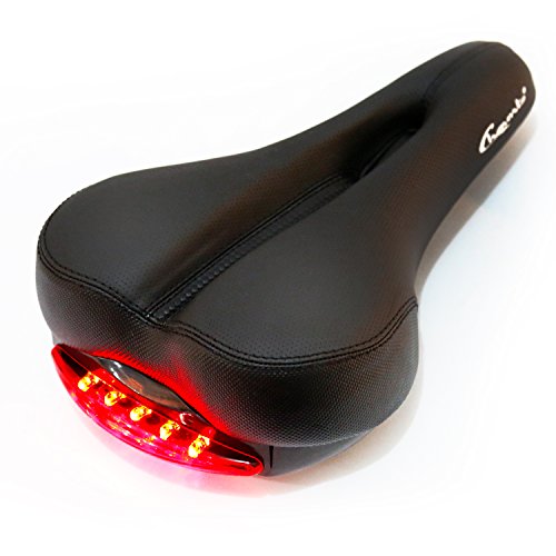 The Rear Light Integrated into this saddle, no worry about detaching rear light whenever you go, with 2x CR2032 batteries included. Two Light Modes: a flashing mode or still mode. It becomes more safety when riding at night, even in daylight the light dispersal is very wide and bright.