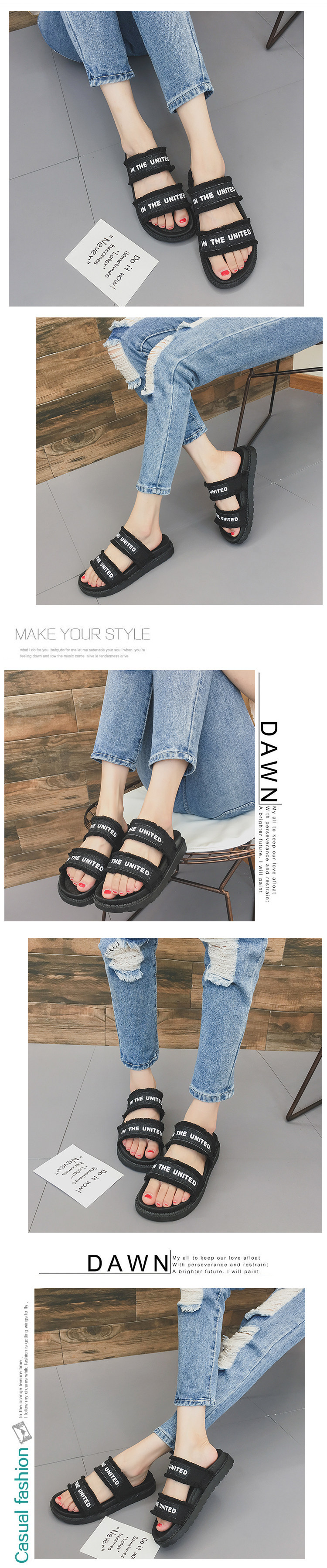 夏季女鞋韩版气质简约一字带凉拖鞋平底外穿露趾防滑百搭沙滩鞋子