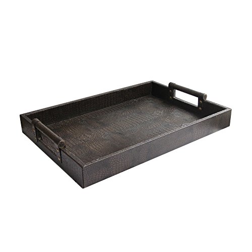 American Atelier 1183915 Leather Rectangle Serving Tray, Brown
