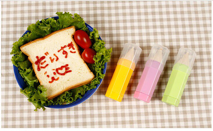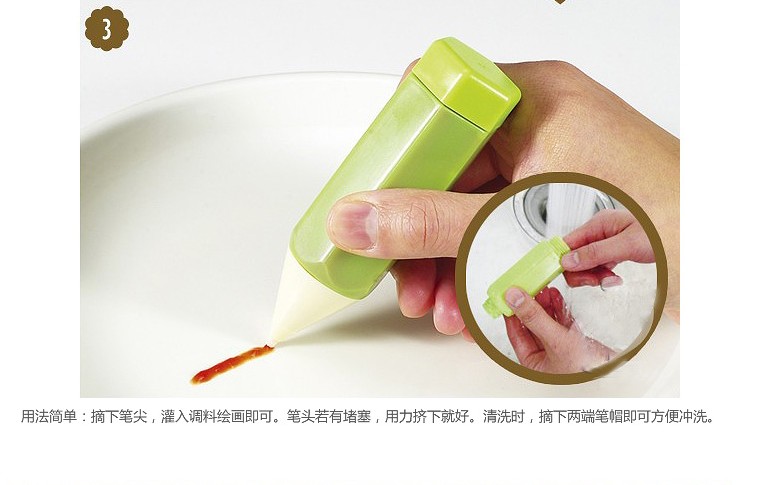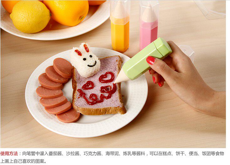 【使用方法】向笔管中灌入番茄酱、沙拉酱、巧克力酱、海带泥、炼乳等酱料,
