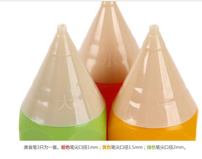 ②3只笔口径大小不一样,较浓稠的酱料可以选择大点口径的美食笔。