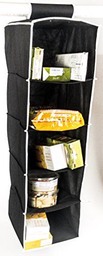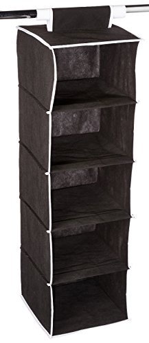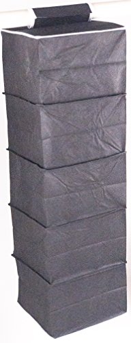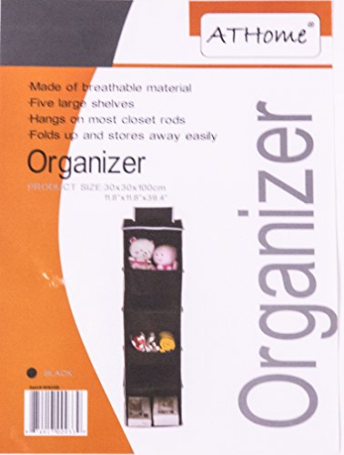 ATH Hanging Clothes Vertical Storage Box (5 Shelving Units) Durable Accessory Shelves - Easy Set up Closet Cubby, Sweater & Handbag Organizer - Clean & Tidy Wardrobe, Easy Mount, Black