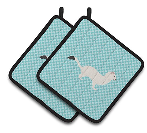Caroline's Treasures BB8046PTHD Stoat Short-Tailed Weasel Blue Check Decorated Pot Holder, 7.5" x 7.5", Multicolor