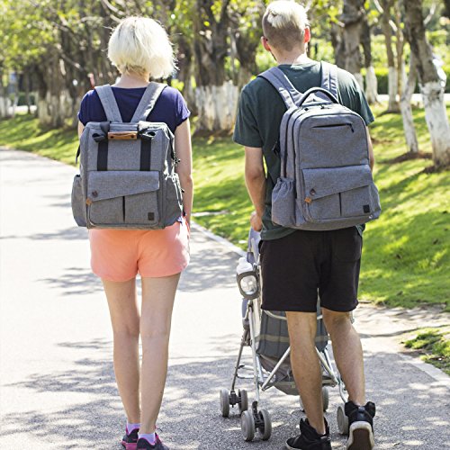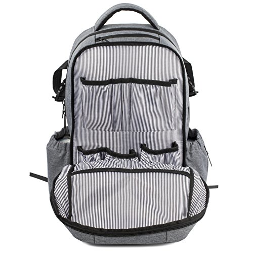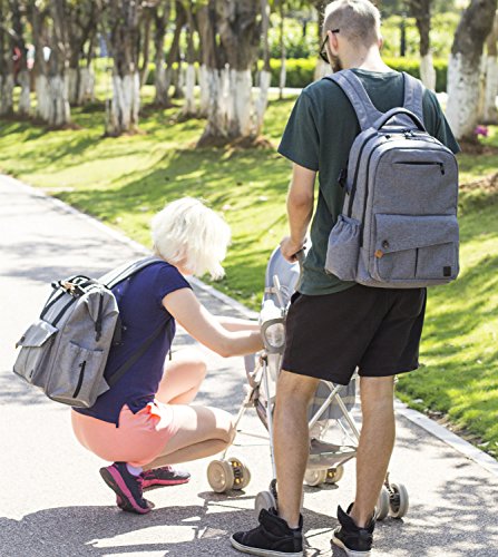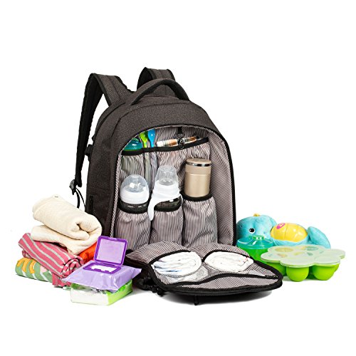 Multiple compartments and spacious interior make the all camp backpack diaper bag the ideal companion for baby and parents on the go. Large capacity , tough and durable amazing quality support any baby stroller, with a portable changing pad for free pockets in pockets make you everything easier with baby multi-function make you be a super parent . It support bottle holders, baby toys and good insulation. -Comfortable all camp offers the on-the-go parent a comfortable hands-free diaper bag -good value * quality of a top designer diaper bag but without the price tag - spacious *a total of 19 internal and external pockets along with added features including a zip-top closure, easy-access front big pocket,3 insulated bottle pockets, grab handles, stroller straps, padded shoulder straps,2 easy-access side pockets(1 x bottle/sippy holder, 1 x baby wipes pocket) happy mom ,comfortable -with a good ergonomics design -super cute - who couldn't use a little glamour when dealing with diaper duty the thin striped cotton canvas material is on-trend and is simple to spot clean.Feature