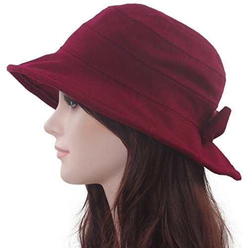 -. Title : Janey&Rubbins Women's Winter Bow-Knot Felt Wool Cloche Bucket Boonie Bush Bowler Hat