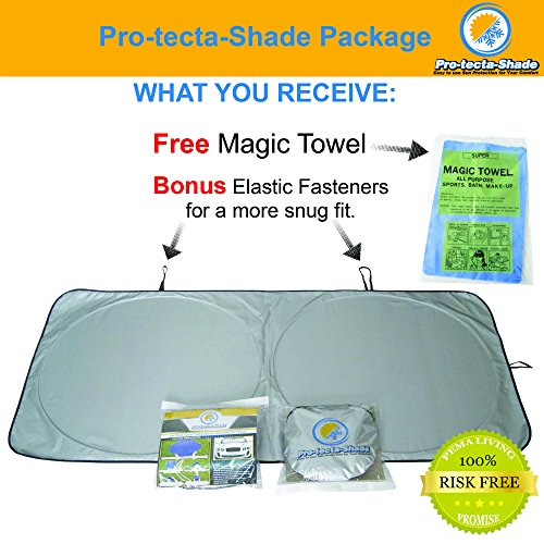 Premium Car Sun Shade - FREE MAGIC TOWEL CHAMOIS - Thickest Quality Material for This Design - 2 Sizes Best Fit For Cars, SUV & Trucks - Front Windshield Cover - Window Sun Visor - Auto Sun Protection - Sunblocker Sun Screen - Car Sunshades - Sunshad