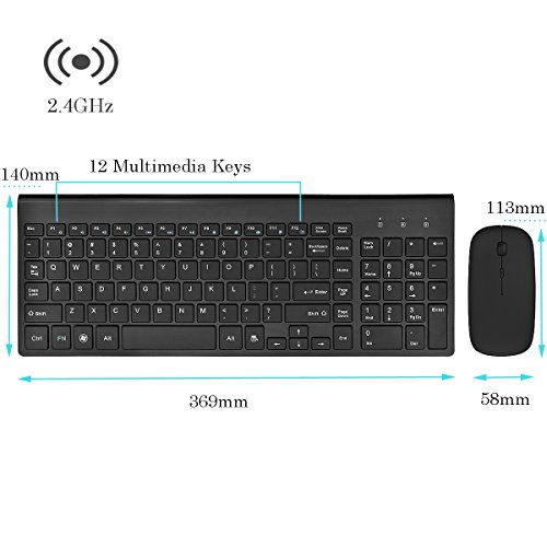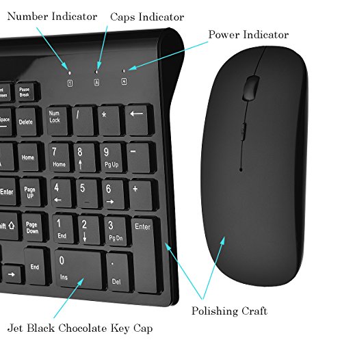 2.4GHz Wireless Keyboard and Mouse Combo, URCO Upgraded 102 Keys Full Size Low-noise Portable Wireless Keyboard and Mouse for Working and Gaming (Jet Black)