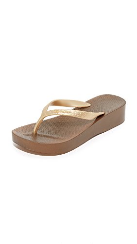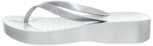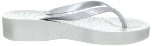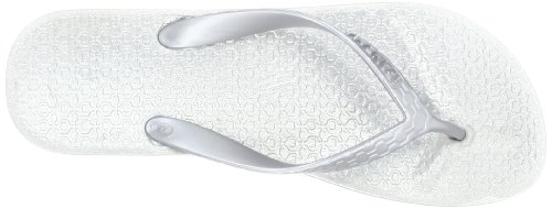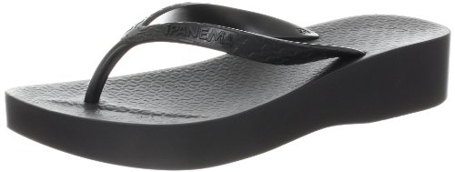 Logo straps and a lightly textured footbed add subtle detailing to these rubber wedge thong sandals. Rubber sole.