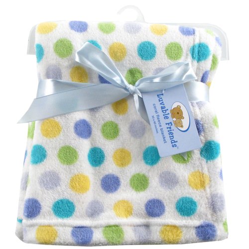 Studio : Luvable Friends Publisher : Luvable Friends Binding : Baby Product Product Description Luvable Friends Fleece Receiving Blanket is a fun and colorful blanket that is extra large and adorably super soft and comfy. Measuring 30 x 40 inches and featuring cute polka dot print, these blankets are perfect for sleeping, cuddling, swaddling, or a car seat, stroller, or nursing cover. All of our blankets are machine washable and feature bound edges for longer last against everyday wear and tear. This item arrives with a gift ribbon for easy last minute gift giving with no extra wrapping necessary! Perfect for baby showers, birthdays, or holidays! 0