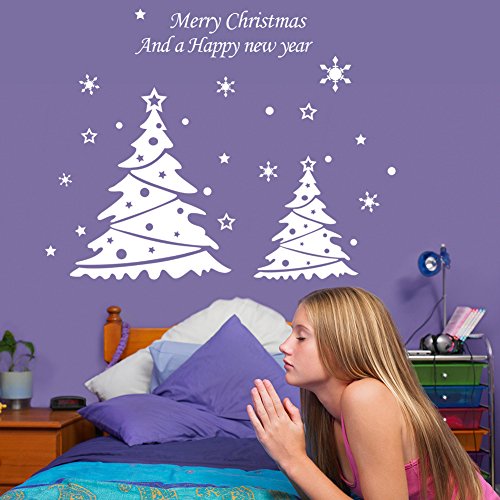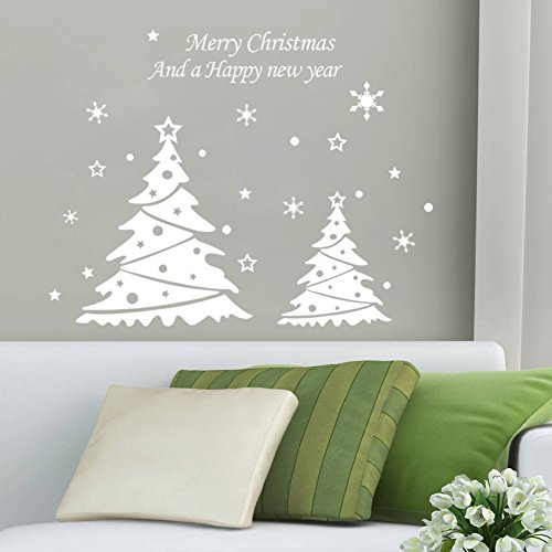 Tree Wall Decal Happy New Year Christmas Tree Wall Stickers Window Decor for Kids Peel and Stick White Wall Deacals,39.4x44.5"