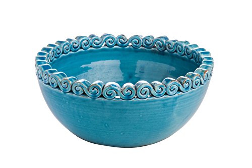 Abigails Puglia Bowl, Turquoise W/Scroll Edges, Large