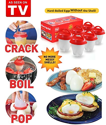The perfect hard-boiled egg cooker without the shell. BPA Free non-stick silicone pods make cooking eggs easier than ever! Crack the eggs into the pods, boil them, and pop them out! Make scrambled eggs, hard or soft boiled, mini -omelettes, eggs benedict and more!