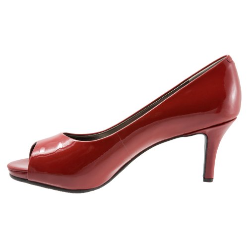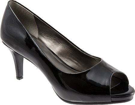 Amazon.com Product Description Sometimes all it takes is the sleekest, simplest thing, and Trotters has it with the Olivia pump. This timeless silhouette in high-gloss patent charms in any era with an open toe and a ladylike 2.75-inch heel for a demure boost that doesn't overwhelm the look. A grippy sole grants you a sturdy strut wherever you take your classic self in Trotters. 0