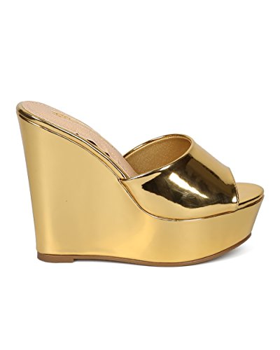 Product Description These simple yet stylish wedges are made with a peep toe, single band at vamp and platform wedge heel. Also made with an easy to slip on design. 0