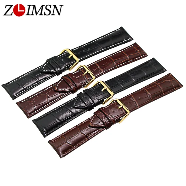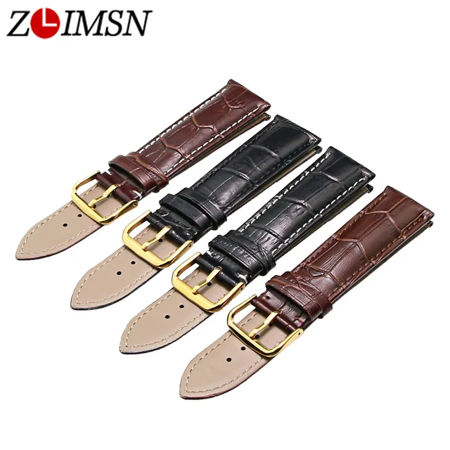 [해외]Zlimsn 골드 컬러 버클 정품 가죽 시계 밴드 블랙 브라운 18 19 20 22 23 24 26 미리메터 손목 시계 액세서리 TG1098