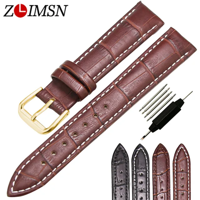 ZLIMSN 골드 컬러 버클 정품 가죽 시계 밴드 블랙 브라운 18 19 20 22 23 24 26 미리메터 손목 시계 액세서리 TG1098