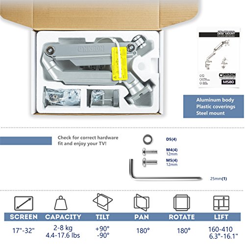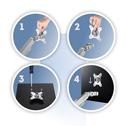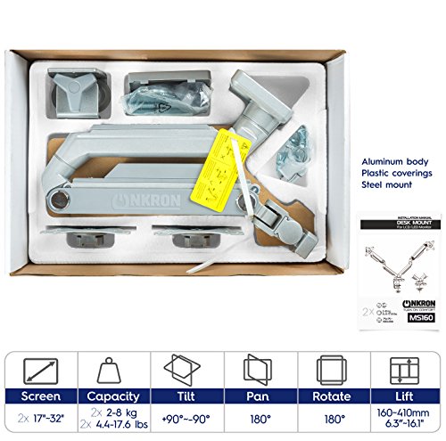 -. Binding : Office Product -. Brand : ONKRON -. Feature : COMPATIBLE with most 17"- 32" LED LCD Flat Panel Curved Screens and Computer Monitors up to 17.6 lbs; VESA compatible mounting holes from 75 x 75 (min) to 100 x 100 (max) / ERGONOMIC desk mount with the durable mechanical sP.R.Ing system delivers optimal viewing angle and comfortable position / FULLY ADJUSTABLE arm provides tilt range +90°~ -90°, swivel range +90°~ -90°, screen rotation +180°~ -180° / MODERN DESIGN lets you hide cables and wires inside the plastic cover for clutter free look / C-CLAMP INSTALLATION: Your desk thickness must be between 0.39"-3.3 inch (10mm-85mm) -. Label : ONKRON -. Manufacturer : ONKRON -. MPN : MS-P -. PackageQuantity : 1 -. PartNumber : MS-P -. ProductGroup : Office Product -. ProductTypeName : OFFICE_PRODUCTS -. Publisher : ONKRON -. Studio : ONKRON -. Title : ONKRON Desk Mount Single Mount & Dual Mount 17"- 32" LED LCD (MS80, MS160)