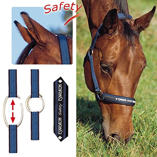 Studio : Eskadron Publisher : Eskadron Binding : Misc. Product Description Lots of horses wear headcollars day and night, in the stable or out at grass. These horses in particular are exposed to significant danger: it is by no means uncommon for a horse to get caught up with its headcollar on branches, posts, nails, gates or gate fastenings. If the horse gets into a panic, it will not give up but rather pulls so long until it frees itself or - if the worst comes to the worst - strangles itself. In order to prevent such injuries, not to mention the worst-case scenario, ESKADRON has developed the Safety-Headcollar. A ring has been integrated into the poll strap of the headcollar which opens in response to a strong tug so that the horse may free itself quickly from its precarious situation. A real innovation by Eskadron! Available in the sizes P2-pony, V-cob, W-full, WE-over size. Text by CALEVO. 0