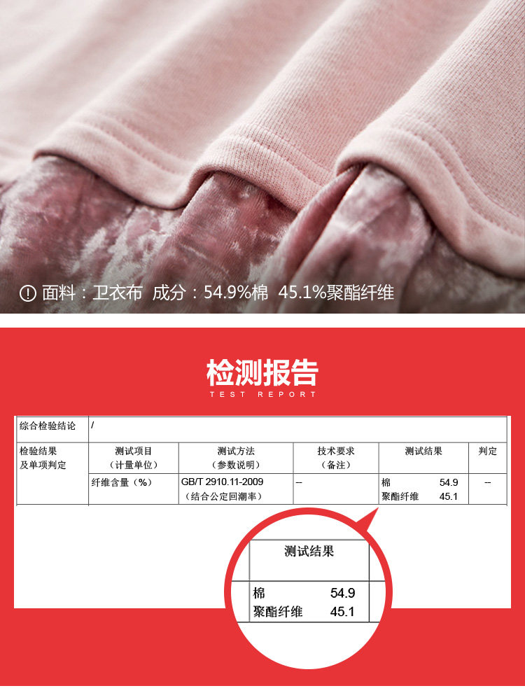 | 主 料:54.9%棉 45.1%聚酯纤维 撞布:94.1%聚酯纤维 5.9%氨纶颜 色:粉色 |
