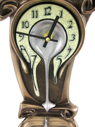 - Feature : "Melting" clock with bronze finish. / Cold cast bronze construction. / Off-white dial with black hands. / Drip detailing. / 11 1/4" high.