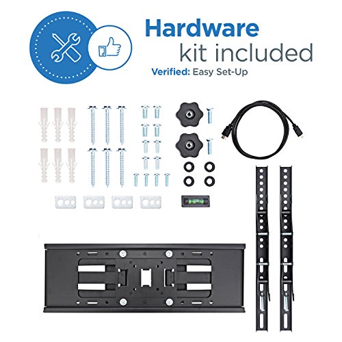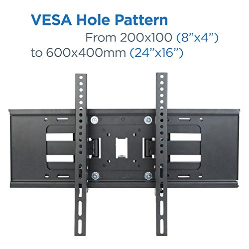 -. Binding : Electronics -. Brand : Basics Hardware -. EAN : 0854894007177 -. Feature : Discreet and intelligently thought to fit most flat-panel TVs from 32" to 70"; includes high-speed HDMI cable / Universal design, fits flat-panel TV VESA hole pattern from 200X100 to 600x400 - see full compatible faceplate below / Versatile: 15-degree tilt and 180-degree swivel will give you maximum viewing flexibility with the perfect angle to view the screen from anywhere in the room / Robust TV mount on a tough steel structure with weight capacity of 132 lbs./ 60kg; extendable up to 16" from the wall / Easy installation with comprehensible instruction and all included hardware in pre-labeled bags. Post-installation adjustment allows perfect TV leveling. Comes with complementary HDMI cable -. Label : Basics Hardware -. Manufacturer : Basics Hardware -. Model : X0640B -. MPN : X0640B -. PackageQuantity : 1 -. PartNumber : X0640B -. ProductGroup : Speakers -. ProductTypeName : AV_FURNITURE -. Publisher : Basics Hardware -. Studio : Basics Hardware -. Title : TV Wall Mount with Dual Articulating Extension Arm, Tilt, Swivel and Rotation for 32-70” TVs -. UPC : 854894007177