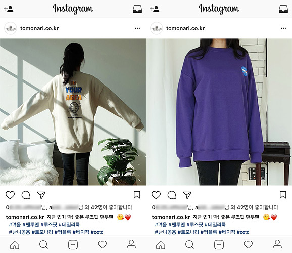 편암함 착용감과 스타일리쉬한 느낌을 느끼실수 있는 맨투맨!