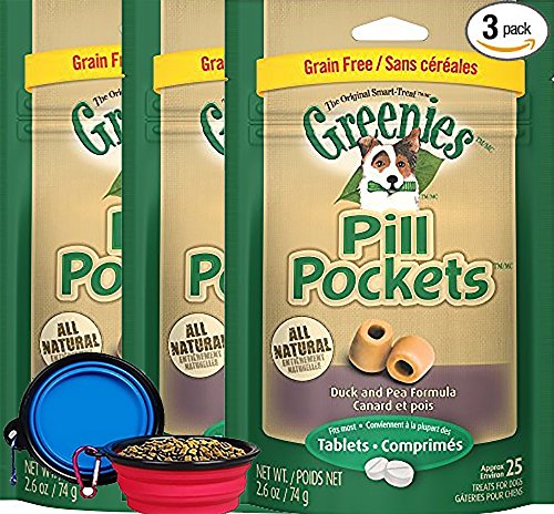 -. Title : Greenies Pill Pocket Tablet for Dogs (3 Pack) Duck & Pea Flavored Dog Treats (75 Tablets) with Hot Spot Pets Collapsible Travel Bowl