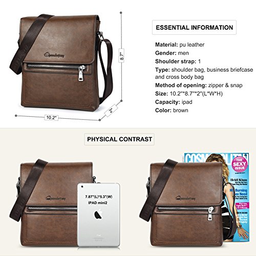 -. Title : Men's Crossbody Shoulder Bag Vintage Leather Briefcase Messenger Bags Business Handbags Fits iPad Mini2 Laptop Bag for School Travel Hiking Work