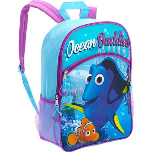 Send girls and boys back to school with Disney's Finding Dory backpack and lunch bag for kids. The full size backpack has character print and bright colors. Adjustable padded straps for comfort. The 2-piece set includes a Nemo character insulated lunch tote bag with fins. This backpack and lunchbox for kids is for back to school, travel, beach, camp or sleepover. 100% polyester. Ages 3 and upFeature
