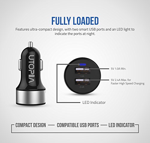 Super Compact Design Utopia Home's car charger are super compact size wise along with being slim and sleek by design. This all means that you can carry it around with quite ease. It is ideal for people who are always on the road. High Compatibility Utopia Home's car charger are high-speed charging and compatible with almost every smartphone and tablet including iPhones and Android phones with a USB charging. Integrated Safety System Utopia Home's car charger has a built-in safety system which allows for protection against short-circuit, over-heating, over-current and over-charging. Important Notes - Always use your original cable, avoid using uncertified cables - If a port is not working correctly, it is probably because the protective internal switch was triggered. Now, you must unplug all the devices and try again after 5 minutes. 0 |